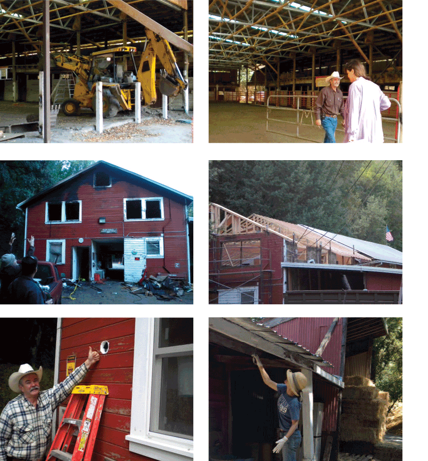 We have already retrofitted the arena with new support posts, replaced the ledger boards in the hay loft, put in a new roof and gutter over the arena stalls, renovated the lodgings in the main barn, and begun initial work on developing and maintaining a riparian buffer along the seasonal creek. WE ARE NOW READY TO BEGIN RESTORATION ON THE OUTBUILDINGS AND STALLS.